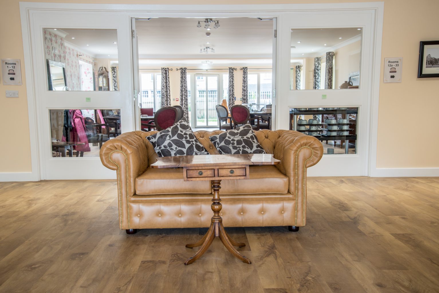 Caldwell Grange has been designed to offer a completely access friendly environment for residents of all mobility levels, including wheelchair users – allowing individuals the freedom to enjoy the whole building in comfort and safety. Dementia-friendly colour schemes and signage has been used. Accommodation at Caldwell Grange is attractive, comfortable and specifically designed to make residents lives easier.