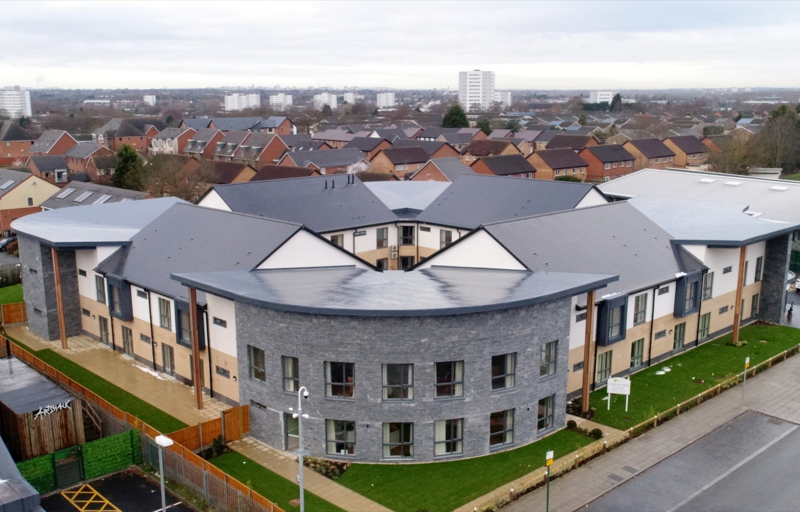 Chelmunds Court is a 73-bed residential home offering compassionate, professional care for older people, especially those who are living with dementia, both residential and nursing. Centrally located in the Chelmsley Cross area of North Solihull this purpose-built care home is an integral part of one of the UK’s largest ever regeneration programmes. The surrounding area has been extensively remodelled to provide state of the art leisure, healthcare, residential and community facilities, including new schools and green areas. Chelmunds Court in Chelmsley Wood benefits greatly from being at the heart of such an important new social project and a new community has been created.